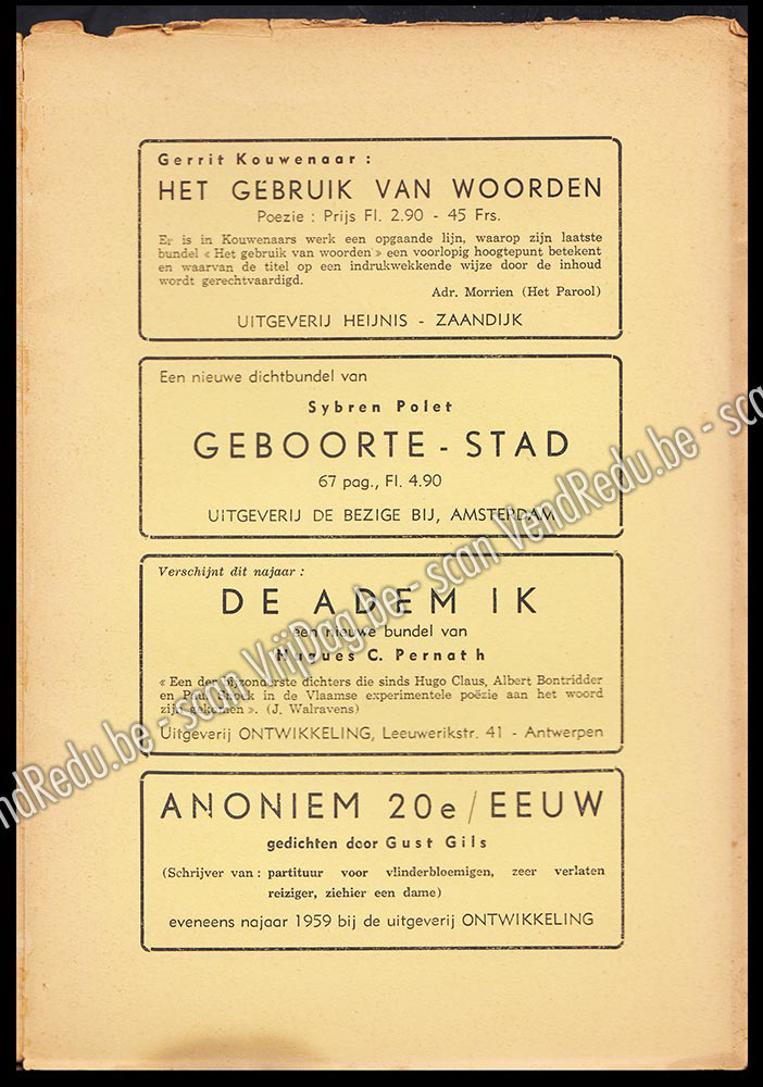 - redaktie: tone brulin, gust gils, rené gysen, walter korun, hugues c. pernath pp, hans sleutelaar, cornelis bastiaan vaandrager.
