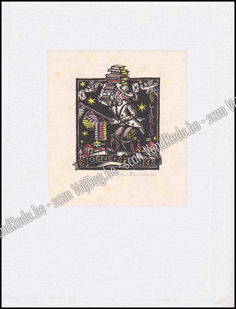 - Exlibris van Eugène Strens door Rose Reinhold. Eugène Strens (1899–1980) was een invloedrijke Nederlandse industrieel die vooral naam maakte als een van Europa’s grootste verzamelaars van kleine grafiek. Zijn passie lag bij het ex-libris (boekmerken) en gelegenheidsgrafiek, zoals nieuwjaarskaarten en geboortekaartjes. In de loop van zijn leven bouwde hij een indrukwekkende collectie op van circa 130.000 bladen, die tegenwoordig een essentieel onderdeel vormt van de collectie van Museum Meermanno in Den Haag.