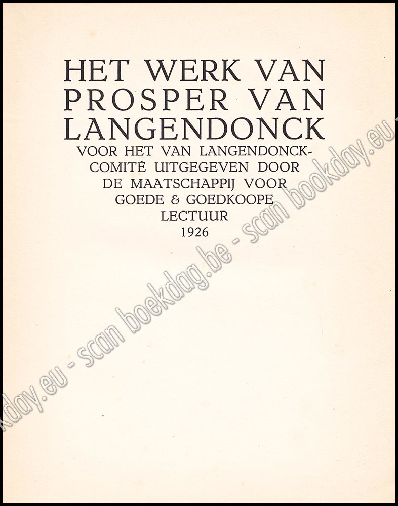 Van Prosper Van Langendonck (geb. 15 Maart 1862, gestorven 7 November 1919) was een kleine bundel "Verzen" verschenen in 1900. Daarna kwam een tweede uitgaaf, die in het laatste oorlogsjaar, toen de betrekkingen tusschen Noord en Zuid verbroken waren, buiten het toezicht van den dichter moest bezorgd worden: de tekst is er vaak ontsierd door storende fouten en sommige van Van Langendonck's mooiste gedichten werden er niet in opgenomen.