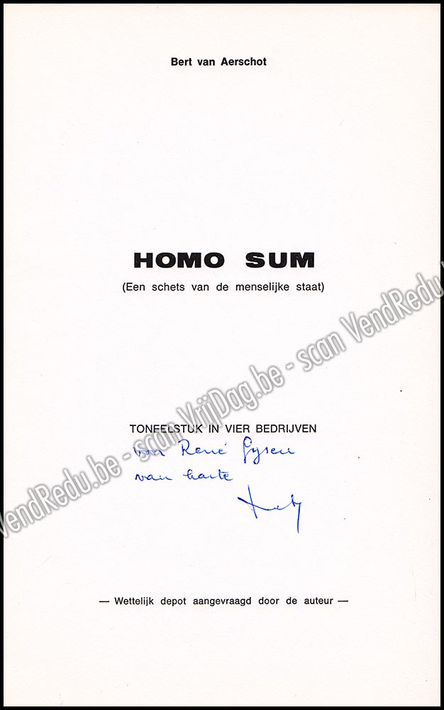 Homo sum. Een schets van de menselijke staat. Toneelstuk in vier bedrijven. Gesigneerd