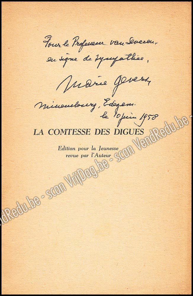 - Avec une dédicace au Professeur van Severen. Signé Marie Gevers, Missembourg, Edegem, 10 juin 1958.