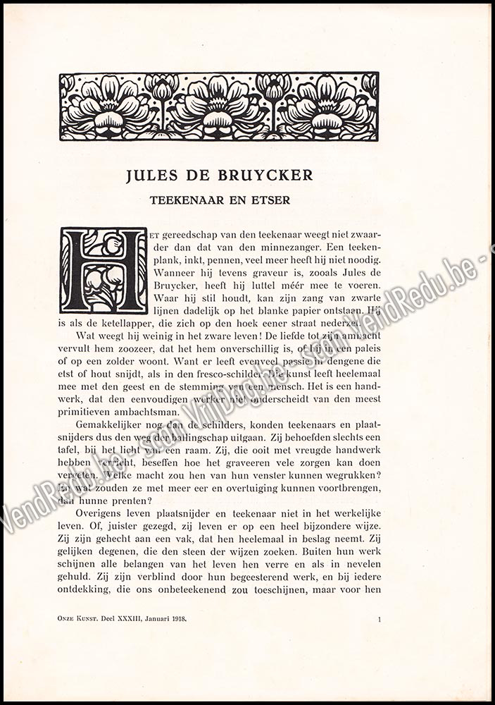 Onze Kunst. Jg. 17, nr. 1. Januari 1918. Jules de Bruycker