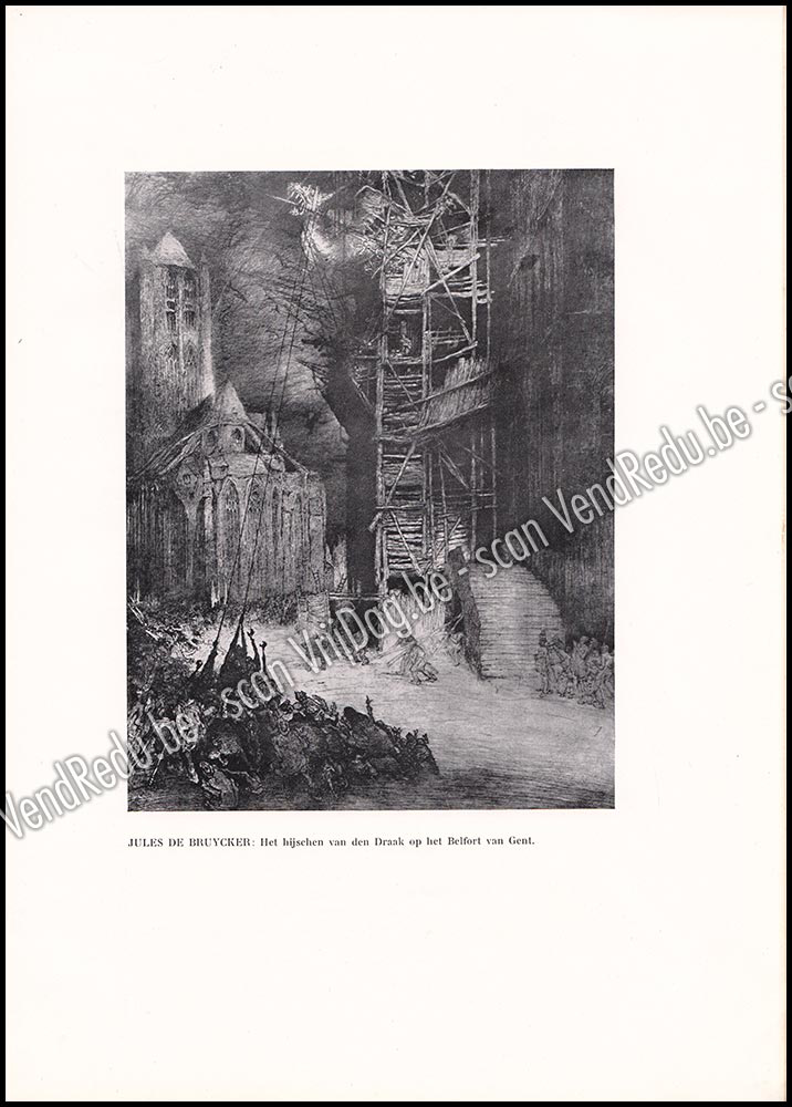 PLATEN: Het hijschen van den Draak op het Belfort van Gent.