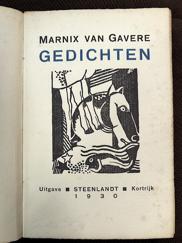 - Genummerd (Dit is nummer XIX) en gesigneerd door Marnix van Gavere, (pseudoniem van Fernand Pauwels) (Deinze, 31 december 1897 – Deinze, 27 januari 1974), hij was een Vlaamse dichter die deel uitmaakte van de post-expressionistische generatie. Naast Gedichten publiceerde hij onder meer de bundel Oude en nieuwe gedichten (1939).