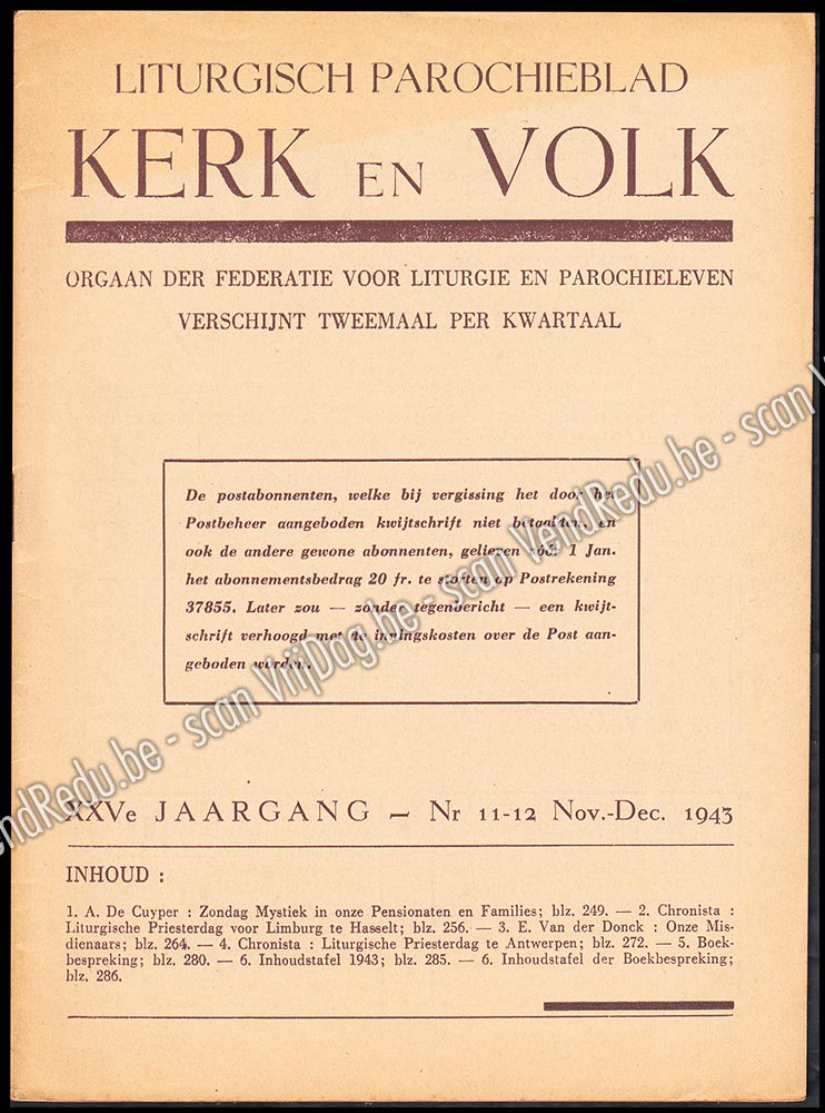 Liturgisch Parochieblad Kerk en Volk. XXVe jgn 1943. 7 nrs