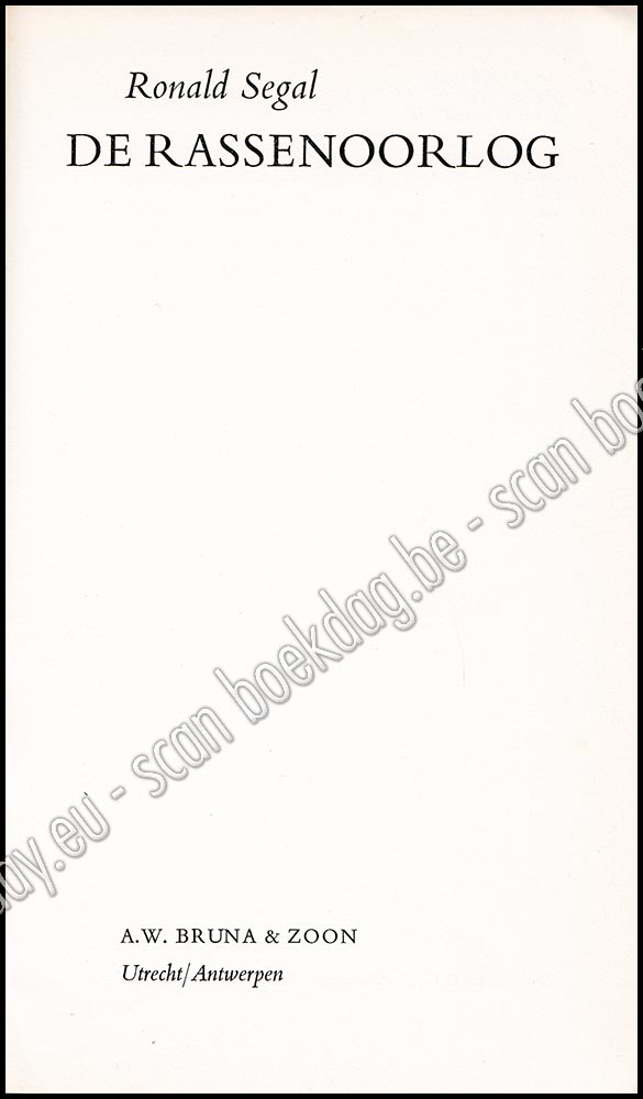 - Ronald Segal gelooft dat de meest gevaarlijke verdeeldheid tussen de volkeren op aarde vandaag eerder wordt veroorzaakt door het verschil in ras dan door ideologische of economische verschillen. Hij waarschuwt dat de wrok en de haat die nu al eeuwen sluimeren tussen blanken en gekleurden in onstuitbaar geweld zullen losbarsten, tenzij de blanke wereld de ontzaglijke betekenis van de raciale kloof gaat inzien en een manier vindt om die te overbruggen. Om deze stelling te steunen heeft hij een briljante wereldgeschiedenis geschreven vanuit dit gezichtspunt. Voor de schrijver is de werkelijke gelijkheid tussen alle rassen, en de rationele verdeling van de welvaart op de wereld om de armoede in de gekleurde wereld uit te bannen, niet minder dan een zaak op leven en dood voor de mensheid. Hij houdt een provocerend, goed geargumenteerd en uiterst leesbaar pleidooi voor zijn visie. De leden van de 'blanke aristocratie' die het lezen zullen geschokt worden in hun zelfgenoegzame opvatting over de bijdrage van Europa aan de beschaving van de wereld en de vrede.