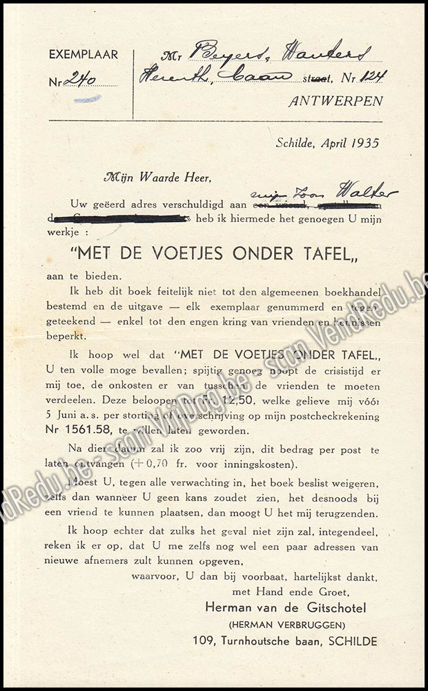 - Genummerde oplage, met briefje aan de ontvanger Constant Beyers-Wauters.