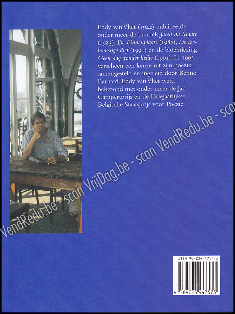 - Eddy van Vliet (1942-2002) publiceerde onder meer de bundels Jaren na Maart (1983), De Binnenplaats (1987), De toekomstige dief (1991) en de bloemlezing Geen dag zonder liefde (1994). In 1992 verscheen een keuze uit zijn poëzie, samengesteld en ingeleid door Benno Barnard. Eddy van Vliet werd bekroond met onder meer de Jan Campertprijs en de Driejaarlijkse Belgische Staatsprijs voor Poëzie.